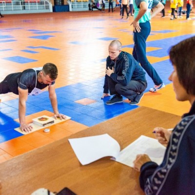 Сгибание и разгибание рук от пола или скамейки, а проще говоря, отжимания вызвали большой интерес. Количество раз отсчитывал специальный счетчик с символикой ГТО. Стас Бенда из нововоронежской команды установил рекорд этих соревнований, он отжался 140 раз!