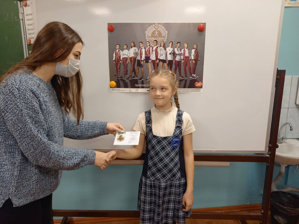 Сегодня в МКОУ Нововоронежская СОШ № 3 в 4 «Б» классе состоялось награждение золотыми, и бронзовыми знаками отличия ГТО. 4 человека были награждены бронзовыми знаками. А 2 человека получили золотые знаки. Ребята поддержали своих одноклассников и захотели поучаствовать в сдаче нормативов ГТО. Награждение проводили классный руководитель Титова О.В. и администратор центра тестирования комплекса ГТО Карлова Л.А.