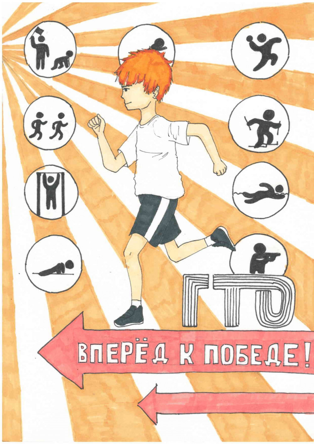 В этом ежегодном творческом конкурсе «ГТО в моей жизни» в номинации «рисунок» принимали участие ученики школ городского округа город Нововоронеж. Зайцева Анастасия из МКОУ Нововоронежская СОШ № 2 (17 лет)поучаствовала в конкурсе и подготовила творческую работу на тему: «Рисунок. Вперед к победе!».