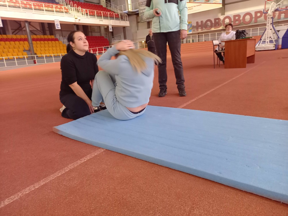 Сегодня на стадионе «Старт» города Нововоронеж прошла сдача нормативов Всероссийского-физкультурно-спортивного комплекса «Готов к труду и обороне. Преподаватели МКОУ Нововоронежская СОШ № 3 Ильчик Екатерина Вячеславовна, Острецова Светлана Владимировна и Романенко Лидия Николаевна показали свои спортивные способности и выполнили несколько нормативов. Судьи принимали: бег на дистанцию 60 метров, наклон вперед из положения стоя прямыми ногами на гимнастической скамье, сгибание и разгибание рук о гимнастическую скамью, поднимание туловища из положения лежа на спине.